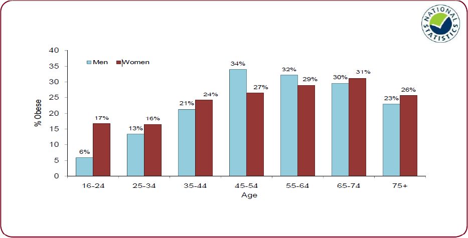Figure 2: Levels of obesity in men and women in England - 2009 (Source; Defra 2011. Reproduced with kind permission)