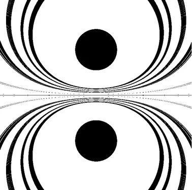 Equation (2) should be recognised as a well known field dipole equation in the Cartesian coordinate system. In this case Vm has been replaced as , a given constant. The reciprocal form of k was chosen for reasons of symmetry. Each value of k produces a unique set of curved contour lines. What might not be recognised is that equation (2) is equivalent to a high degree polynomial without a general solution.