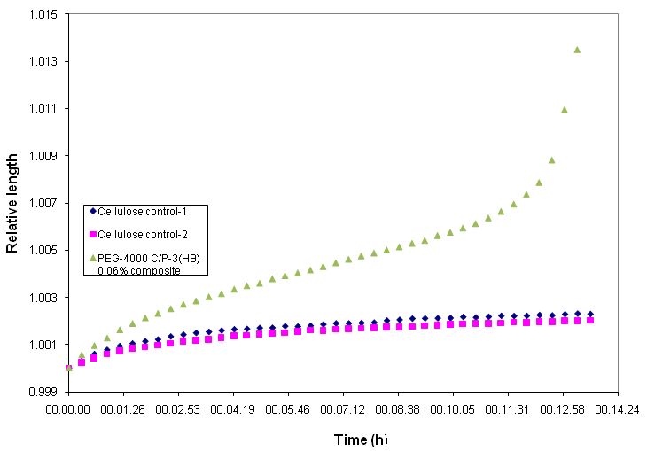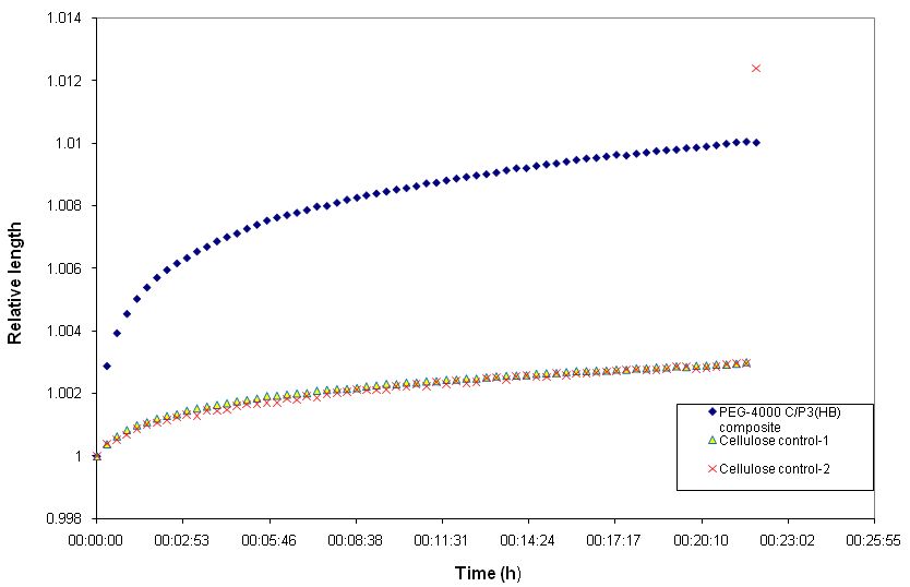 Keywords: Cellulose, poly-3-hydroxybutyrate, extensiometry, composite, rehydration.