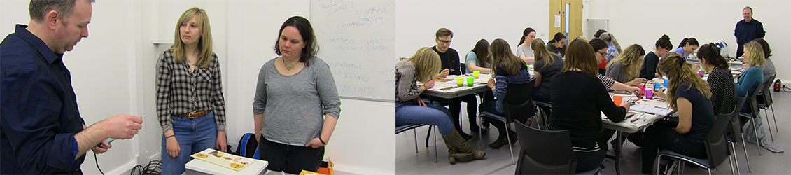 In this instance I decided that an ancient painting techniques workshop would be of particular interest to my undergraduate students studying Domestic Space in the Roman World, an important part of which is the study of Roman wall painting, and for my MA Art of the Ancient World students. Further, as this workshop was of great relevance to Art History students, it provided an excellent opportunity for interdisciplinary connections and all the workshops were advertised to both Art History and Classics students. Dr Sarah Walford (Art History) also helped with organisation on the day and Art History were kind enough to provide a lunch for all participants on the workshop. This provided an opportunity for students from different departments to share and discuss their knowledge and thoughts on ancient painting techniques.