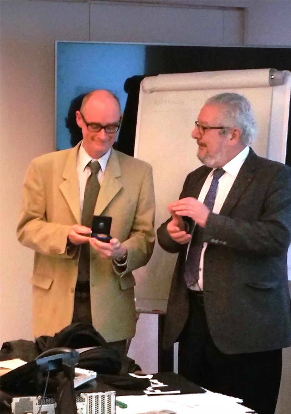 Congratulations to Kevin Butcher, who was awarded the prestigious 'jeton de vermeil' of the Société française de Numismatique in Paris on the 1st December. Pictured is Kevin receiving the award from former president and former director of the Cabinet des médailles of the Bibliothèque nationale de France, Michel Amandry. After the presentation Kevin gave a lecture entitled 'Le monnayage des Assyriens'