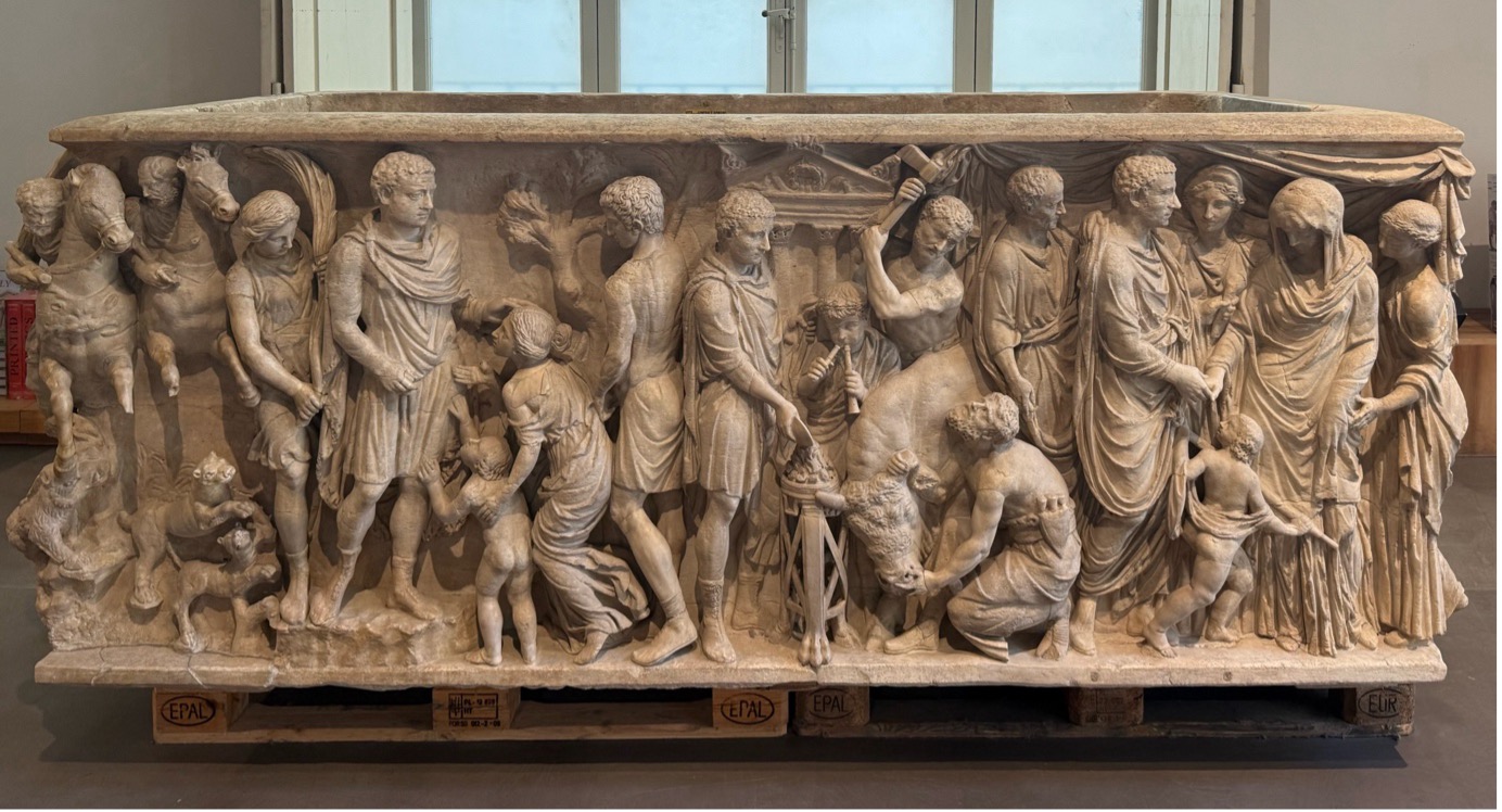The recent launch of the hit video game Death Stranding 2 has reshaped how we imagine death and the afterlife. In this fictional world, the dead do not simply vanish; instead, they become “Beached Things” — spectral figures trapped in a liminal space called a “Beach”, suspended between the living and the dead. The concept of liminality immediately resonated with me, as Roman sarcophagi are often understood as liminal objects themselves, or at least as possessing a distinct degree of liminality. Like the “Beach”, the sarcophagus marks a threshold: the dead enclosed within, the living remaining outside. What makes the comparison even more compelling is that, in the game, each person typically possesses a “Beach” of their own — yet those with deep emotional ties might end up sharing the same one. Similarly, in antiquity, sarcophagi were sometimes reused or adapted to accommodate more than one individual, connecting lives that may never have overlapped in life, but now rest together in death. Now, the question is: how did these Romans come to share the same casket? For a sarcophagus depicted with scenes drawn from the life of Roman elite culture, now displayed in the Uffizi, Florence, the reuse might not be simply motivated by familial connections, but perhaps by being drawn to the images and values depicted on the sarcophagus. In this sense, the sarcophagus does not just hold bodies, but becomes a site of posthumous connection through shared ideals.