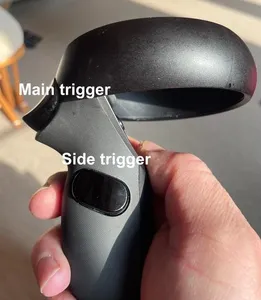 Each controller has a set of buttons and triggers. The main controller on the front is usually used to make selections. This works like a mouse pointer in the main interface of the VR experience. The left trigger is used in different ways in apps.
