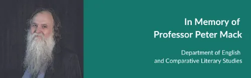 The department are shocked and deeply saddened to learn that Peter Mack died as the result of a car accident on Thursday 5th October 2023. Peter Mack was a rigorous scholar and an excellent administrator, He directed the Warburg Institute from 2010 to 2014 and was both Head of the Department of English & Comparative Literary Studies and Chair of the Faculty of Arts, besides being actively involved in the Centre for the Study of the Renaissance. A Fellow of the British Academy and a leading authority on the English and European Renaissance, combining Shakespeare and Montaigne, his work and kindness touched everyone who met him, from students to colleagues, across various disciplines. His many books included Elizabethan Rhetoric: Theory and Practice (2002); Reading and Rhetoric in Montaigne and Shakespeare (2010); A History of Renaissance Rhetoric 1380-1620 (2011); and Rhetoric's Questions, Reading and Interpretation (2017). Peter will leave an enduring legacy.