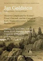 While at Warwick Professor Goldstein participated in two events, each related to her forthcoming publications: a reading lunch was held on Monday, 25 April, at which a chapter from The Post-Revolutionary Self was discussed; and a lecture entitled ‘’Hysteria Complicated by Ecstasy’: Freud, Foucault, and the Case of an Early Nineteenth-Century Savoyard Peasant Girl,’ was held Tuesday, 26 April.