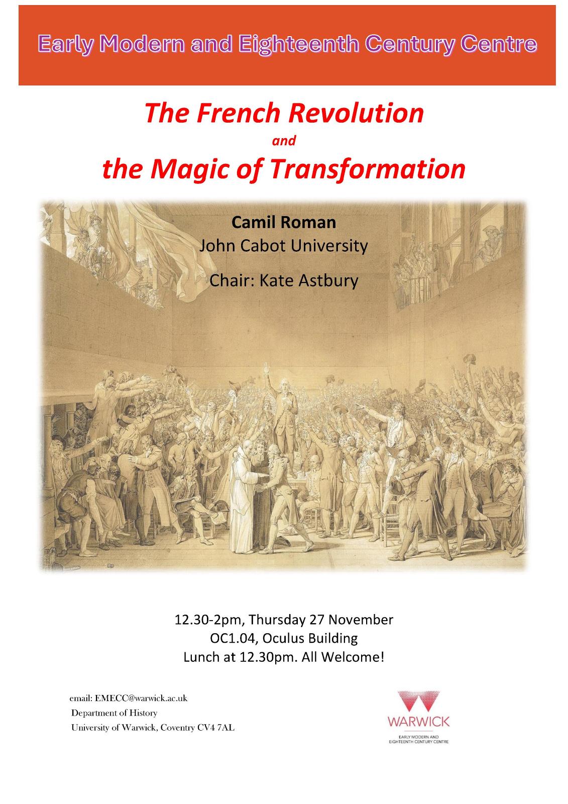 Lunchtime seminar, The French Revolution and the magic of transformation, Camil Roman (John Cabot University)