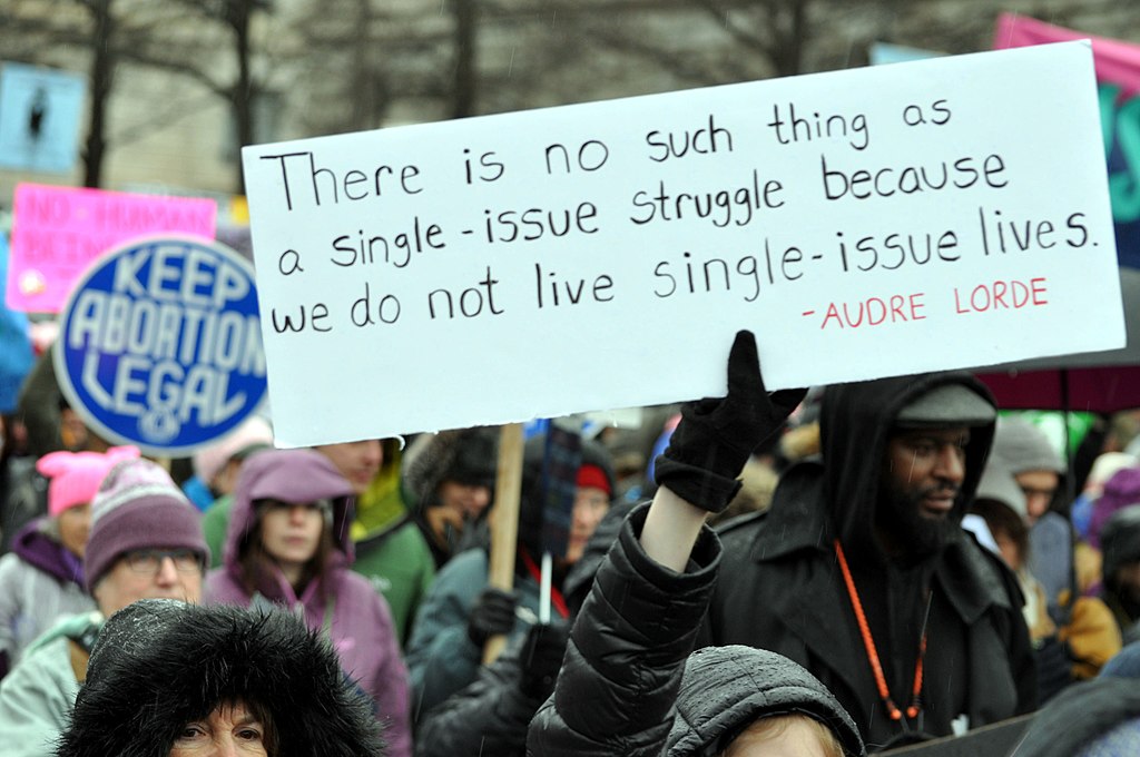 (Audre Lorde quote on protestor's placard, Women's March 18 January 2020, Edward Kimmel from Takoma Park, MD, CC BY-SA 2.0, via Wikimedia Commons)
