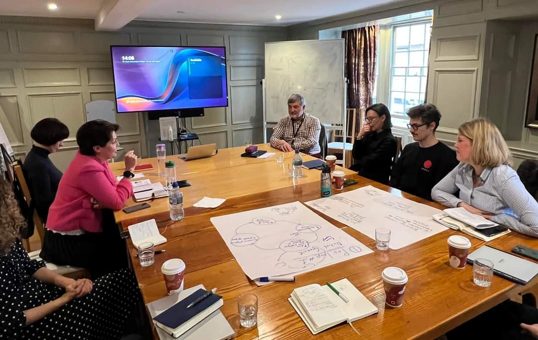 Professor Elena Korosteleva and Dr Tatsiana Chulitskaya met with the John Smith Trust's current cohort of Belarus fellows to discuss the fellows' research projects and future opportunities for cooperation. The event took place at Harris Manchester College, University of Oxford.