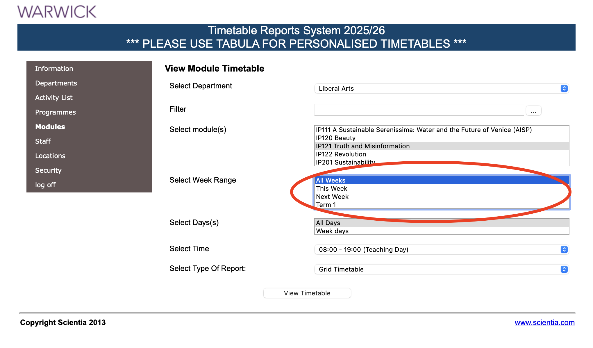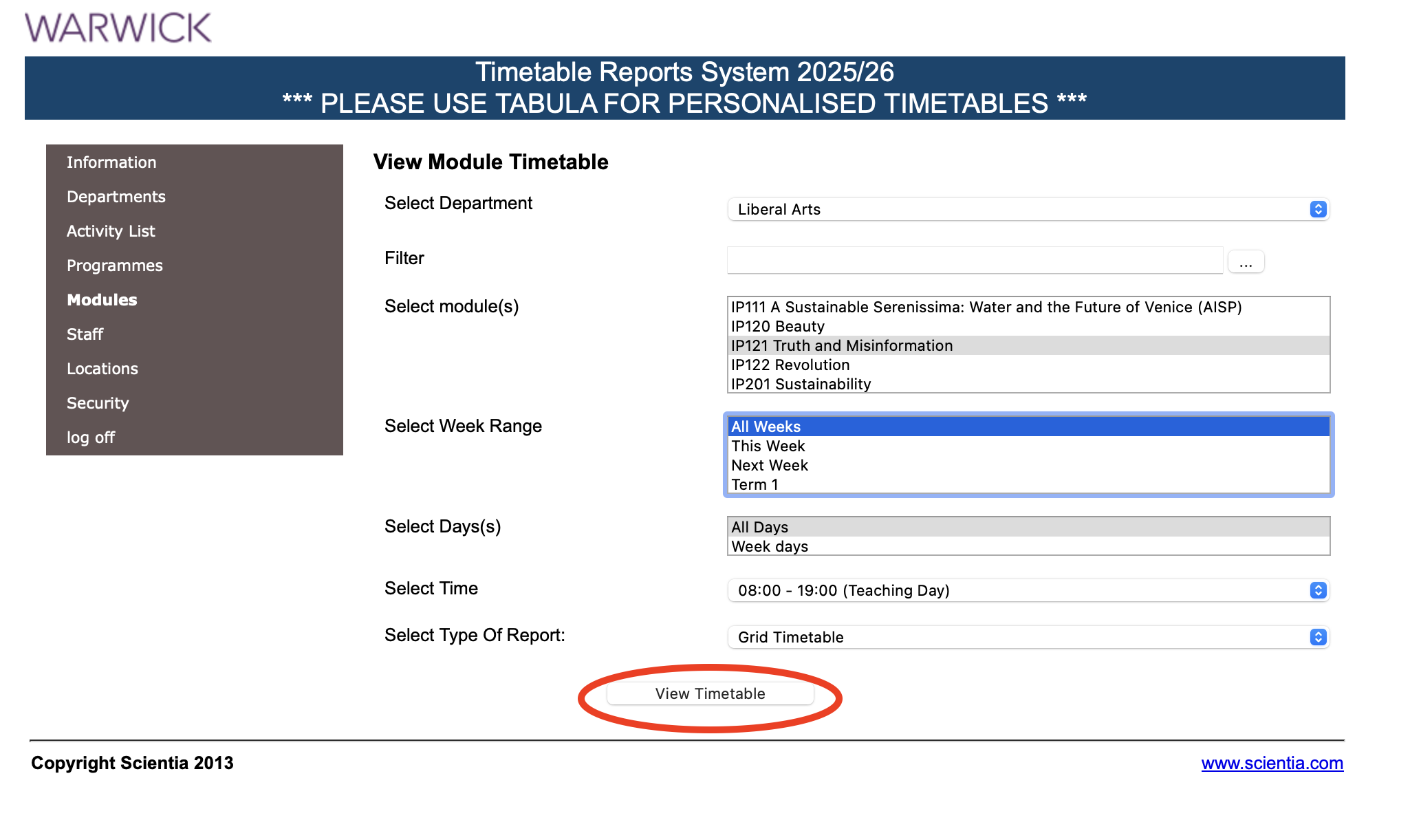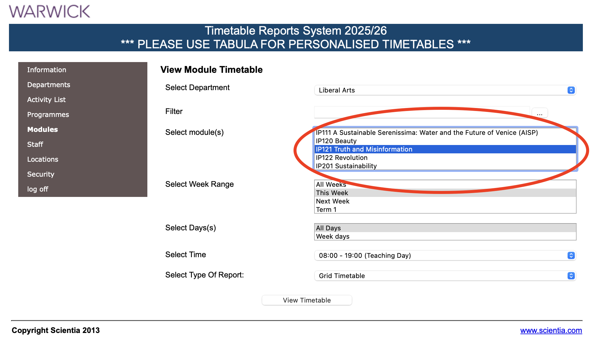 While you are waiting for your personal timetable to be generated, you can check the timetable for modules on the central timetabling website, following the guidance below.