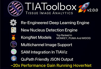 The Tissue Image Analytics (TIA) Centre is pleased to announce the release of TIAToolbox v2.0.0, a major update to the opensource platform widely used for digital pathology and AI-driven tissue image analysis.