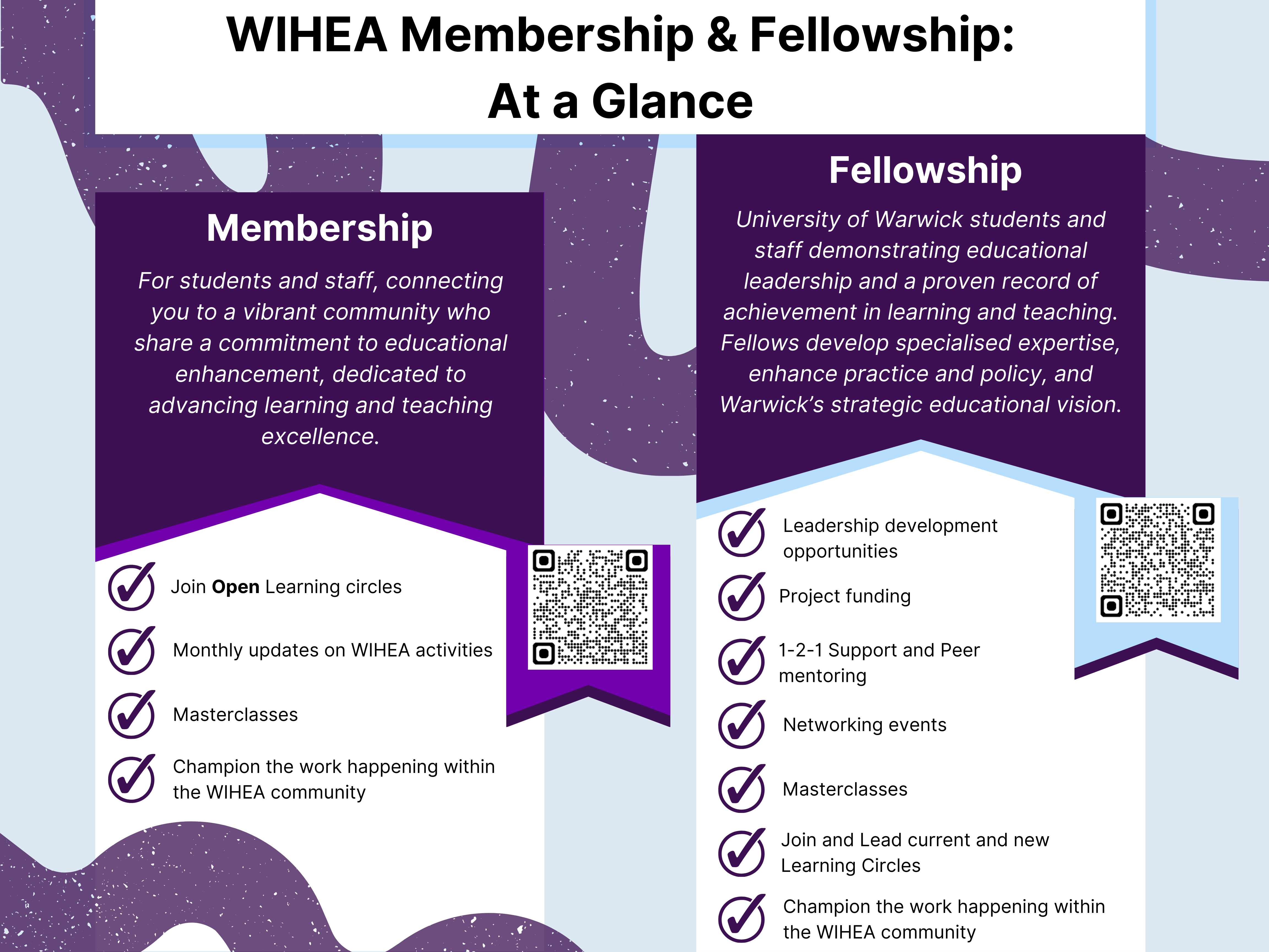 The Academy is a collaborative community, comprising of Fellows, Alumni and Members who each have a demonstrable commitment to learning and teaching and collectively represent the global and interdisciplinary staff and student body at Warwick. Students, academic staff and professional service staff can become members of WIHEA and benefit from the many activities, events and networks the Academy offers, on the basis of a proven record of achievement in supporting learning and teaching.