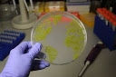 This image shows seedlings of the model plant Arabidopsis thaliana germinating on an agar petri dish. We are using molecular biology to investigate how a special form of cell division called meiosis is controlled and regulated in Arabidopsis. By investigating meiosis we aim to understand how genetic material (DNA) is reshuffled and passed between parents and offspring in plants. We can then use this knowledge to inform and improve current plant breeding technologies, hopefully allowing plant breeders to generate novel crop varieties with desirable traits.