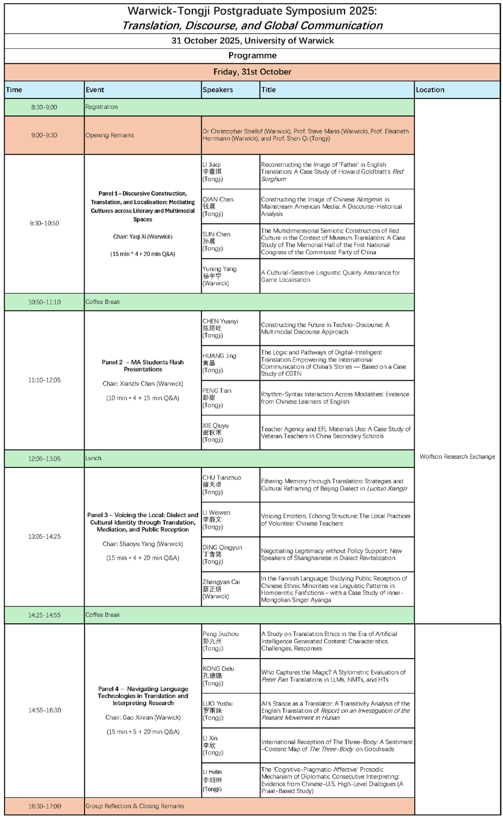 Warwick-Tongji Postgraduate Symposium 2025: Translation, Discourse, and Global Communication