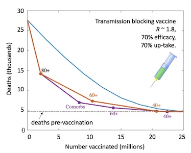 This paper highlighted the importance of prioritising vaccination towards the oldest and most vulnerable in the population, as this generates the maximum reduction in deaths and other severe outcomes.