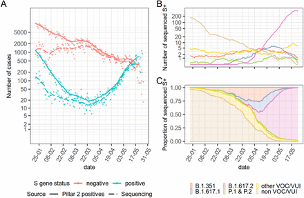 | Robert Challen, Louise Dyson, Christopher E. Overton, Laura M. Guzman-Rincon, Edward M. Hill, Helena B. Stage, Ellen Brooks-Pollock, Lorenzo Pellis, Francesca Scarabel, David J. Pascall, Paula Blomquist, Michael Tildesley, Daniel Williamson, Stefan Siegert, Xiaoyu Xiong, Ben Youngman, Juniper, Jonathan M. Read, Julia R. Gog, Matthew J. Keeling, Leon Danon. (2021) " Early epidemiological signatures of novel SARS-CoV-2 variants: establishment of B. 1.617. 2 in England" (medRxiv) https://doi.org/10.1101/2021.06.05.21258365 |