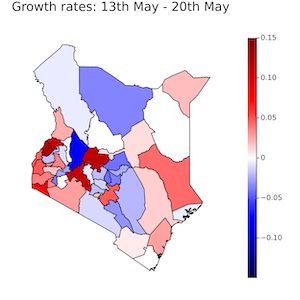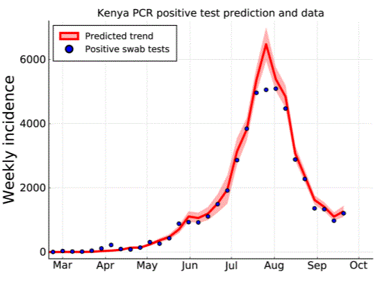 Most notably, there is a strong link between the Zeeman Institute and researchers at the KEMRI-Wellcome Trust Centre in Kenya. In collaboration with statisticians, modellers and bioinformaticians at the Kemri-Wellcome Trust Research Programme (KWTRP) in Kenya, we have been amongst the first to apply sophisticated inference and model projection to national data from tropical sub-Saharan Africa. As the availability of COVID-19 data, and the public health situation, in Kenya has evolved we have continuously updated our modelling techniques.