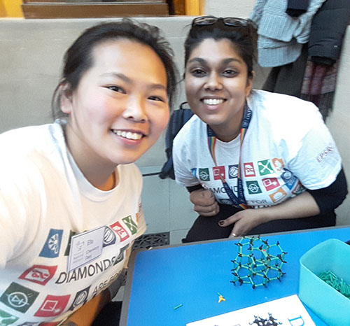 Warwick’s annual XMaS Science Gala is put on to showcase all the exciting science that happens at the University of Warwick, and the DST CDT was lucky enough to grab a spot amongst all the other amazing science! Held on the evening of Wednesday 31 January 2018, the event saw 750 participants. On our stand we took the ever popular ice melting demo, which never fails to impress everyone who feels the immediate effect diamond can have. Not only this, but our electrochemistry stand also lit up our visitors faces as we showed how diamond can be modified to become electrically conductive enabling new and updated technologies!