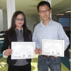 Two 3rd year Engineering students received certificates from Chris Firth of Thales marking their recent sponsorship award