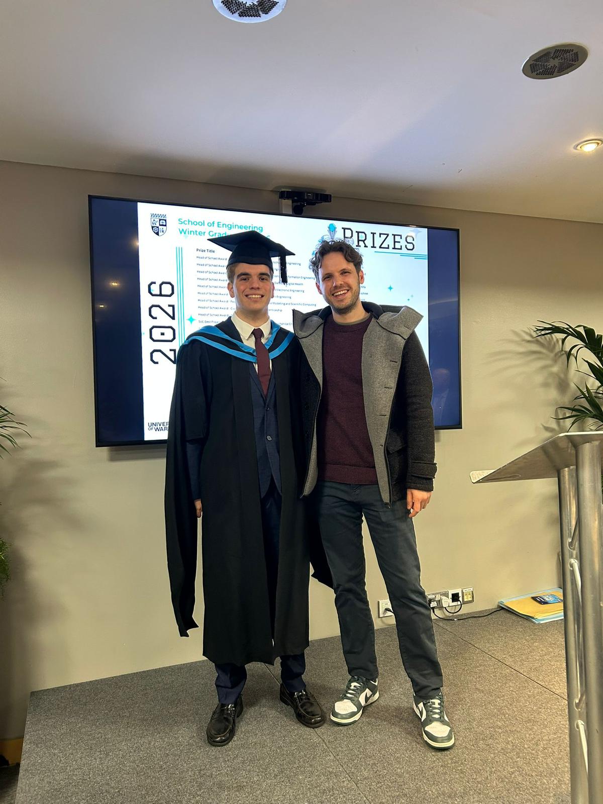 “Reflecting on my time at Warwick, from joining the lab in my second year to graduating now, I feel incredibly lucky to have been surrounded by such a supportive environment, especially my family and Dr Piaggio. Receiving the Head of School Prize is a proud moment for me, but it is also a testament to the guidance I’ve received along the way. I look forward to continuing this work and tackling new challenges during my PhD.”
