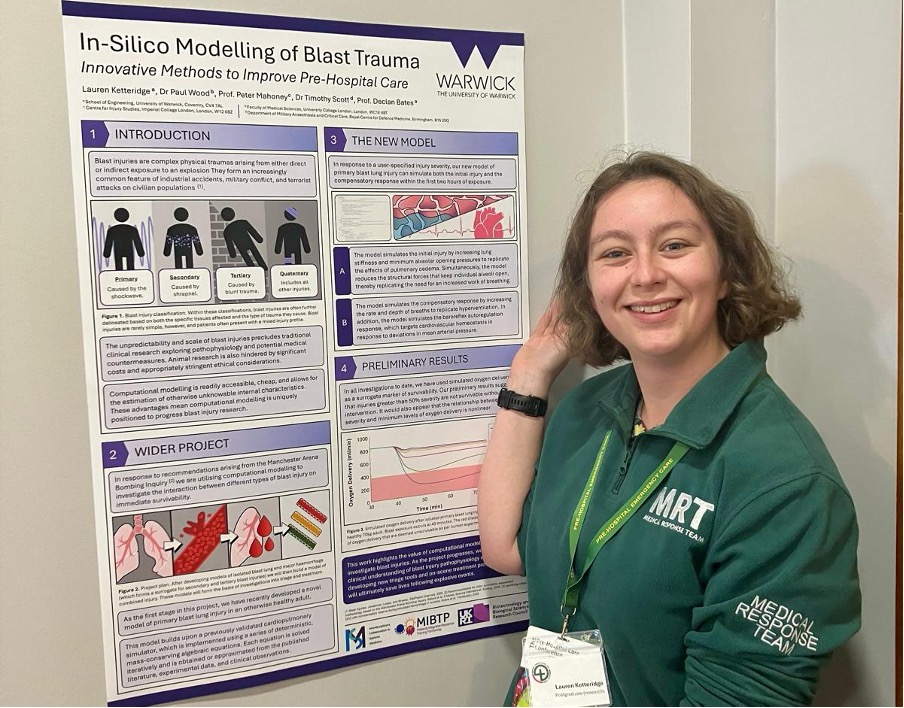 Lauren recently made the short hop up to Leicester to present her plans for modelling complex blast lung injury at the annual British Association for Immediate Care's (BASIC) Pre-Hospital Care conference.