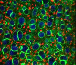 We also study the biogenesis of protein storage vacuoles (PSV) in plant seeds. PSV are the main repository of proteins in seeds, therefore essential for human and plant nutrition. We have recently established that PSV arise from pre-existing embryonic lytic vacuoles during seed maturation. We are now elucidating the steps that convert a protease-rich, degradative organelle into a haven for seed storage proteins
