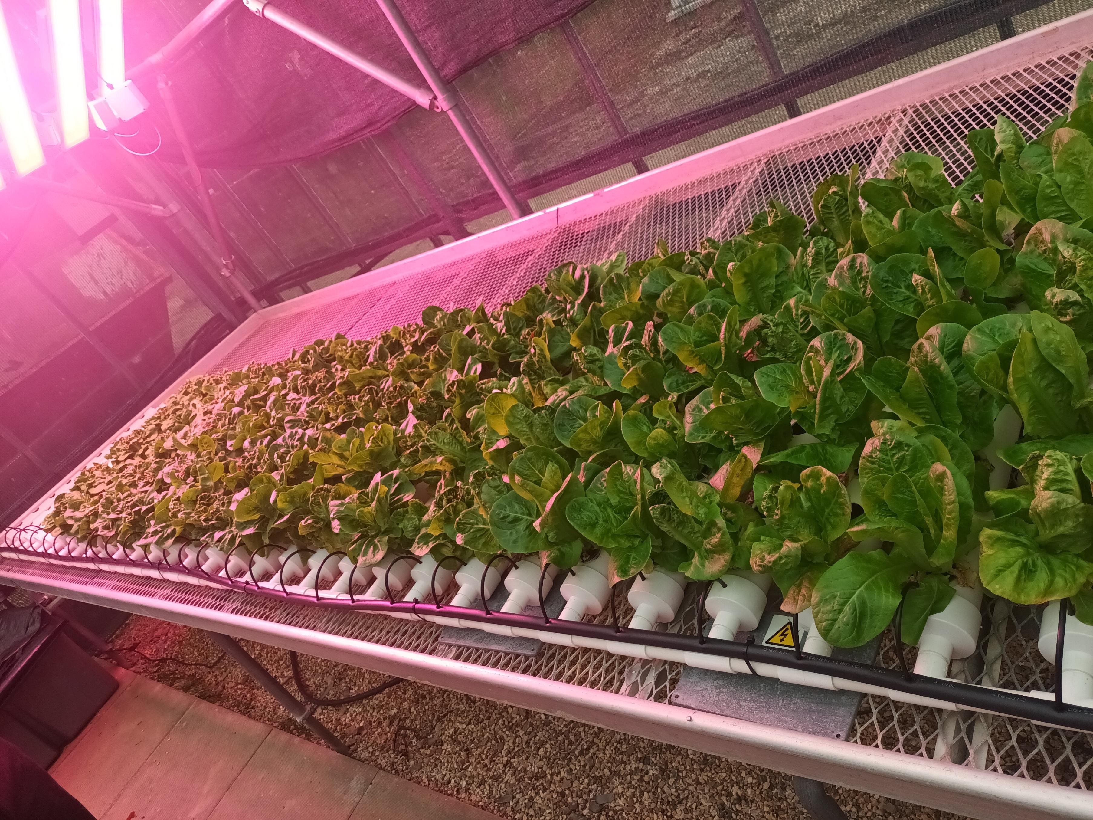 A light gradient set up over lettuce in an experimental system at the University of Reading
