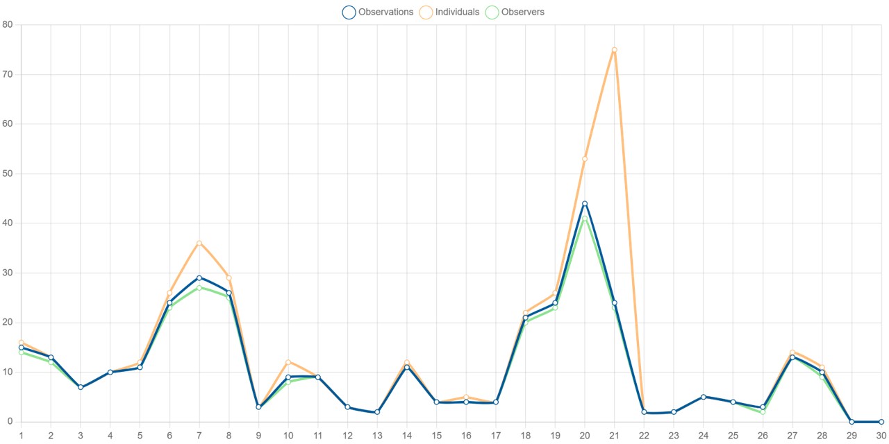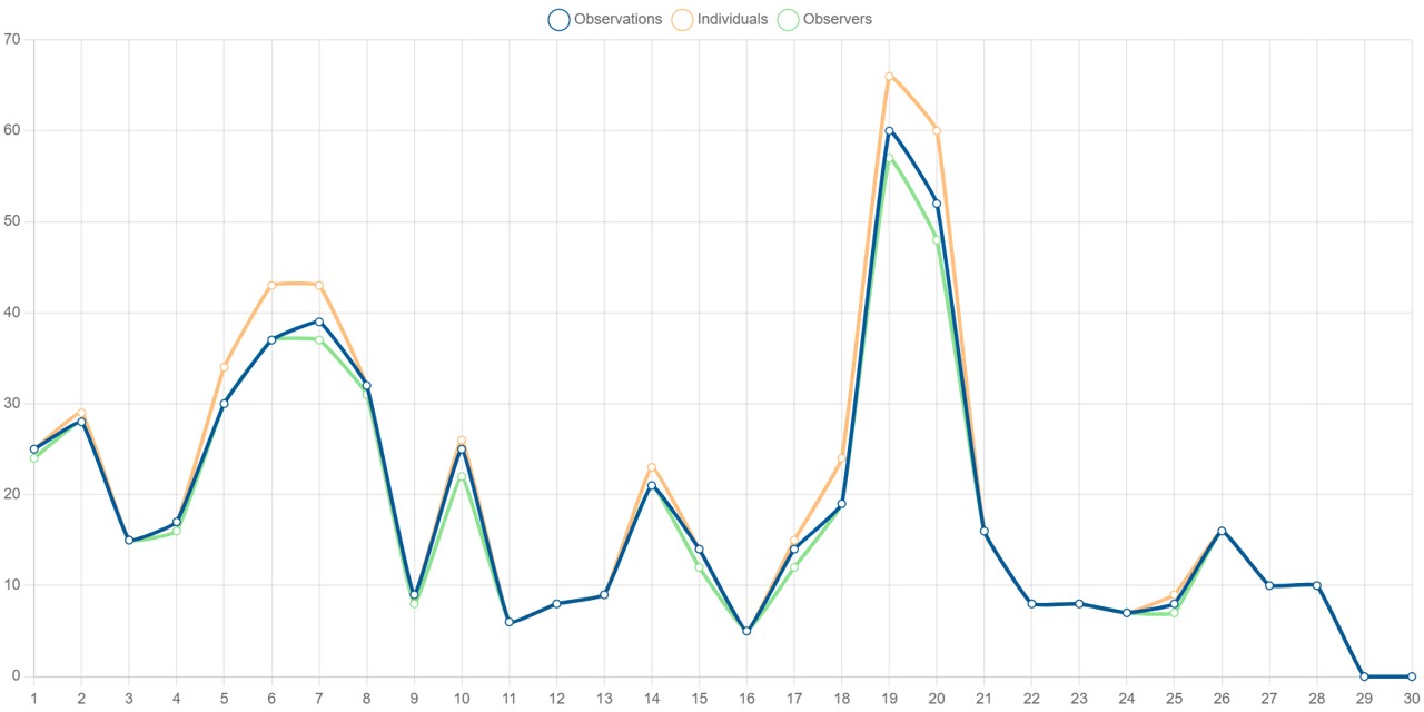As in previous years we are summarising records of sightings of silver Y moth. These are moths captured or seen in the countries below and reported on 'biodiversity monitoring' websites.