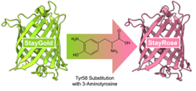 The work presents a new fluorescent protein named StayRose, which is the first red version of the photobleaching-resistant green protein StayGold. These photostable proteins can be tagged to proteins of interest for microscopy and overcome the previous issue of fluorescence loss during prolonged imaging. StayRose contains an unnatural amino acid, 3-aminotyrosine, which underpins its red colour. Tests showed that StayRose maintains the extreme photostability of StayGold. The work presents a StayRose crystal structure, the first of a 3-aminotyrosine-incorporating fluorescent protein, and demonstrates use of StayRose in bacteria and zebrafish embryos.