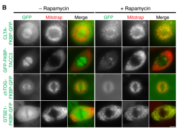 Ellis L. Ryan, James Shelford, Teresa Massam-Wu, Richard Bayliss, Stephen J. Royle; Defining endogenous TACC3–chTOG–clathrin–GTSE1 interactions at the mitotic spindle using induced relocalization. J Cell Sci 1 February 2021; 134 (3): jcs255794. doi: https://doi.org/10.1242/jcs.255794