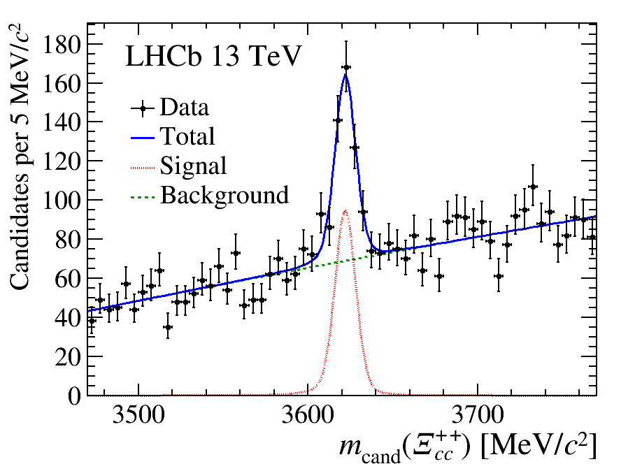 The LHCb collaboration has announced the discovery of a new particle, the Ξcc++ state. Just like the protons that circulate in the Large Hadron Collider, the new particle is a baryon, composed of three quarks bound together by the strong force. However, unlike the proton which is made from three light quarks (two up quarks and a down quark), the Ξcc++ contains one up quark and two charm quarks. This discovery opens the door for novel investigations of the strong force that binds hadrons together.