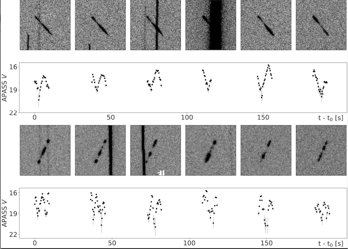 Abstract: Recent anomalies exhibited by satellites and rocket bodies have highlighted that a population of faint debris exists at geosynchronous (GEO) altitudes, where there are no natural removal mechanisms. Despite previous optical surveys probing to around 10–20 cm in size, regular monitoring of faint sources at GEO is challenging, thus our knowledge remains sparse. It is essential that we continue to explore the faint debris population using large telescopes to better understand the risk posed to active GEO satellites. To this end, we present photometric results from a survey of the GEO region carried out with the 2.54 m Isaac Newton Telescope in La Palma, Canary Islands. We probe to 21st visual magnitude (around 10 cm, assuming Lambertian spheres with an albedo of 0.1), uncovering 129 orbital tracks with GEO-like motion across the eight nights of dark-grey time comprising the survey. The faint end of our brightness distribution continues to rise until the sensitivity limit of the sensor is reached, suggesting that the modal brightness could be even fainter. We uncover a number of faint, uncatalogued objects that show photometric signatures of rapid tumbling, many of which straddle the limiting magnitude of our survey over the course of a single exposure, posing a complex issue when estimating object size. This work presents the first instalment of DebrisWatch, an ongoing collaboration between the University of Warwick and the Defence Science and Technology Laboratory (UK) investigating the faint population of GEO debris.