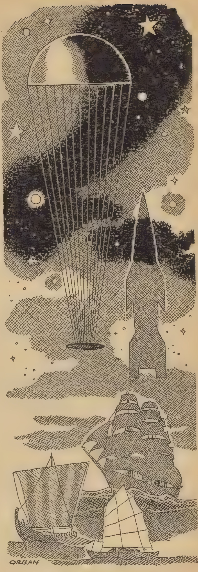 “First, why bother with the sail, when nuclear jet-ships are faster, more dependable, more direct, safer and easier to navigate? The answer is three-fold. First, a sail is not a bad way to move heavy cargo slowly but cheaply through space. Secondly, the range of the sail is unlimited, since we employ the mechanical pressure of light for thrust, and therefore need carry neither propulsive machinery, material to be ejected, nor energy source. The solar sail is much lighter than its nuclear-powered counterpart, and may carry a larger complement of men in a larger hull. Thirdly, to train a man for spасе there is no better instrument than the handling of a sail.”