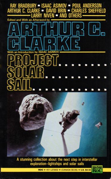 Project Solar Sail was an umbrella phrase used by the World Space Foundation, a private organisation based in Pasadena. While their initial plans were for a modest “engineering demonstration mission” or EDM, the ultimate goal was interplanetary and interstellar travel. As part of their fundraising efforts, they recruited Arthur C Clarke and David Brin to edit an anthology of science fiction stories and science fact essays with the title Project Solar Sail. Published in 1990, it included several of the stories mentioned here, along with others and essays from engineers including one from Robert Forward on Astrowisp. The World Space Foundation still exists, but no longer lists solar sailing as amongst its aims.
