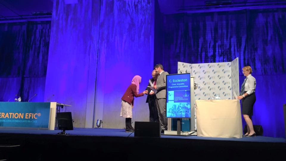 Fatanah Ramlee, PhD student of our lab, won the "Best Clinical Science Poster" at the 9th Congress of the European Pain Federation. She is one of only 3 winners from 1280 posters this year.