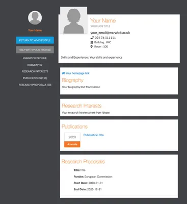 Update your Ideate information (research interests , biography) - https://warwick.tribalhosted.co.uk/home/