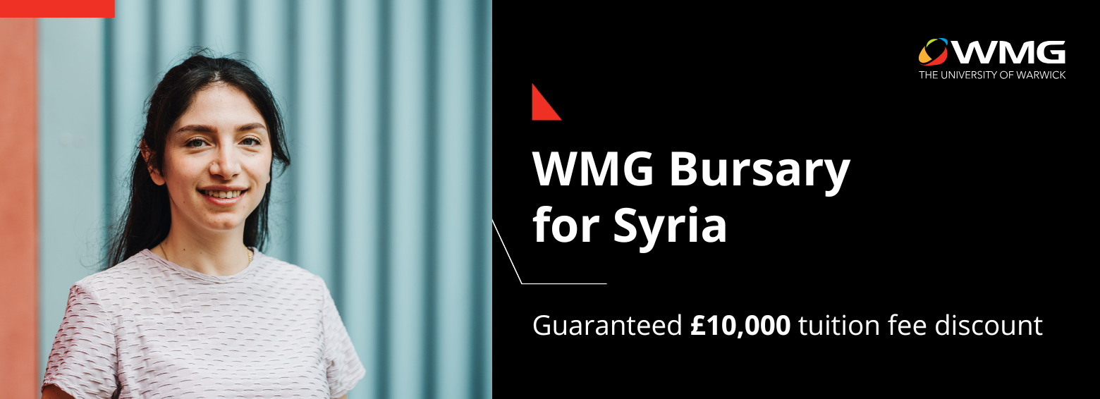 - Successful awardees from Syria will benefit from both the automatic tuition fee discount and the WMG Excellence Scholarship.