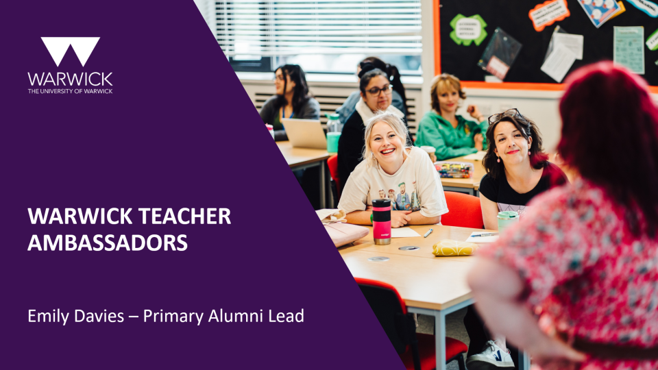 Meet the Unions with the NEU & the NASUWT Becoming a Warwick Teacher Ambassador with the WTAs Chartered College with Carrie Loughran-Smith Education Support with Damian Mawdsley Alumni & Warwick Grad with Laura King and Danielle Goodayle ECT Framework with Becky Wheeler and Sally Hewitt |
