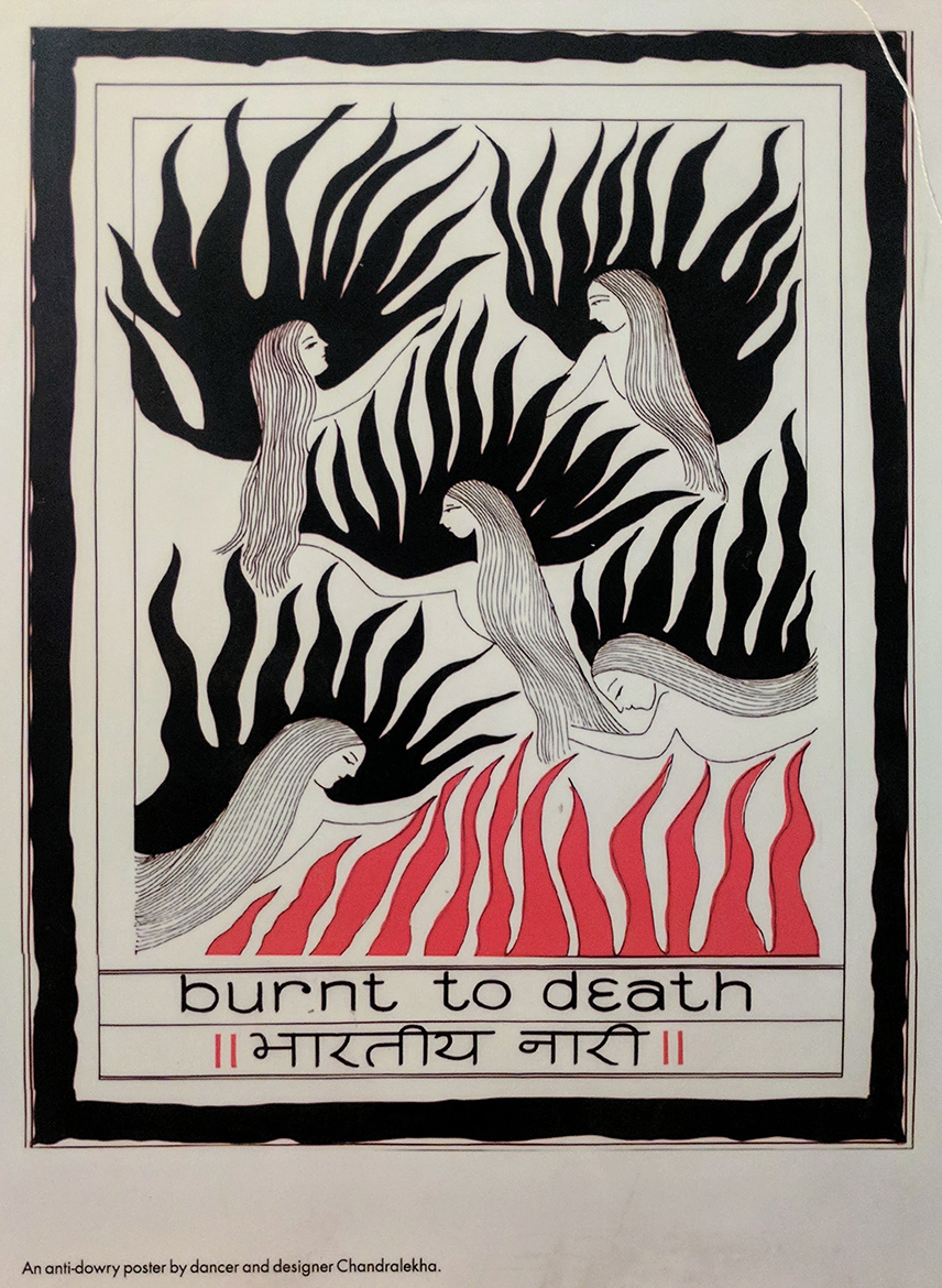Images from L-R: A poster from an exhibition curated by Jindal students. The poster from Bengal that tells women to break their shackles and chain of oppression; Indian Feminist Judgment Project conference poster designed by Nalini Chidambaram; A poster from an exhibition curated by Jindal students. The poster, by Chandralekha, depicts dowry death.
