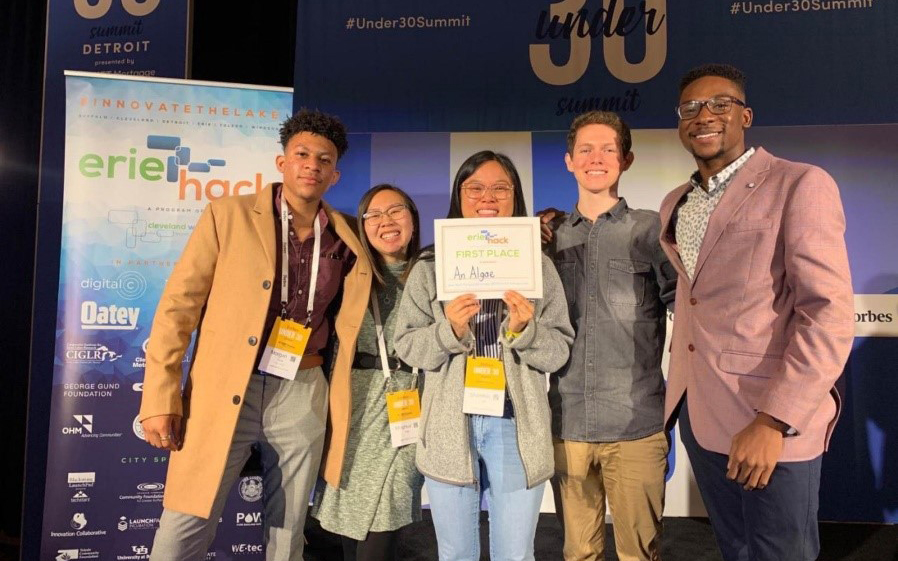 I also had the opportunity to take part in the ErieHack Hackathon, coordinated by the Cleveland Water Alliance. My team and I attempted to tackle the issue of growing algae blooms and eutrophication in Lake Erie. Having studied the Flint Water Crisis in detail for PAIS, this opportunity was unique in that it combined my affinity for creative innovation with my scholarly interests. Our solution, which combined advanced AI technologies with a badging marketing system, impressed the panel of judges, and we won the Hackathon—a really exciting moment!