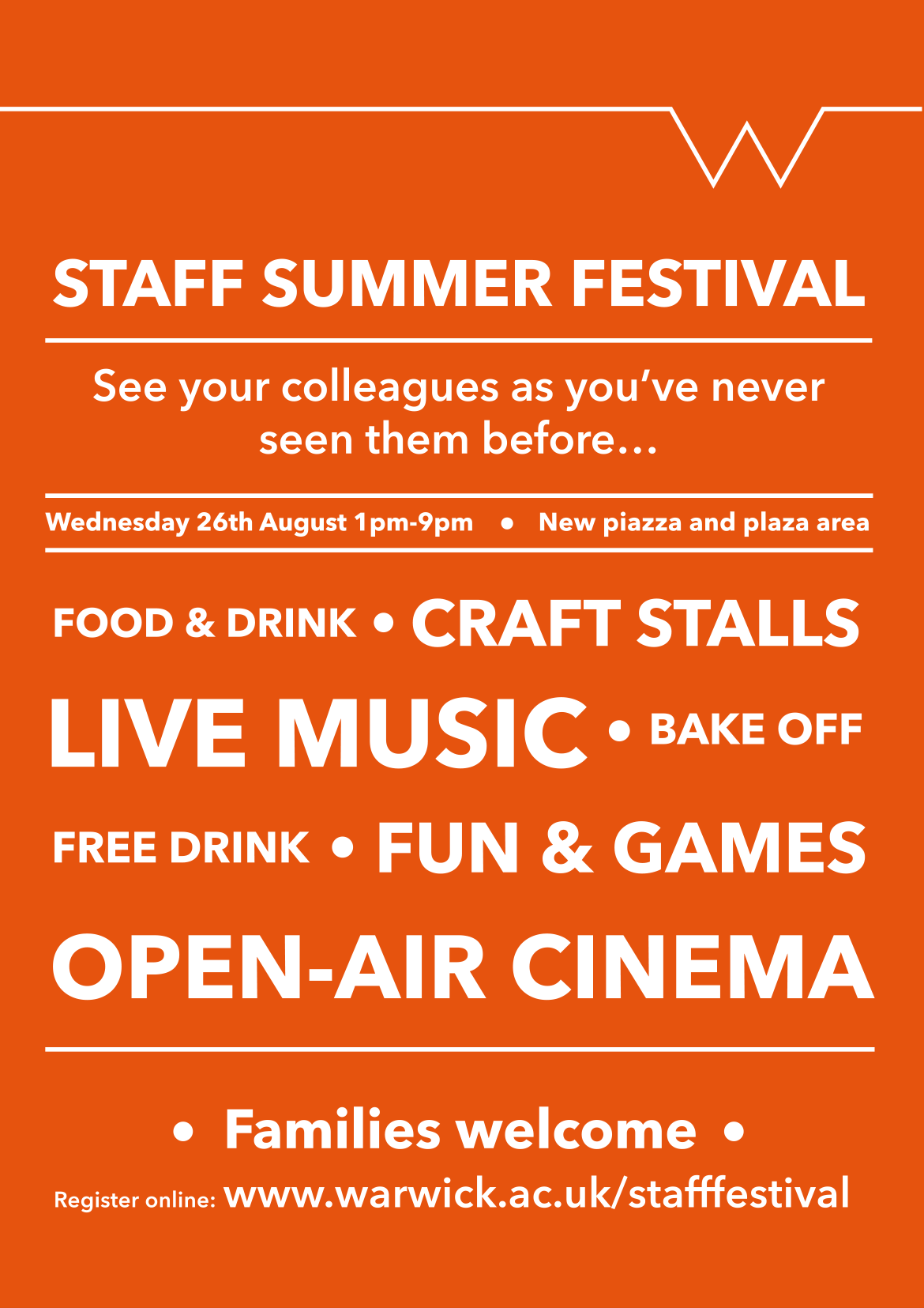 If you’re planning to come, please register your interest at https://www2.warwick.ac.uk/about/warwick50/events/stafffestival/registerinterest/