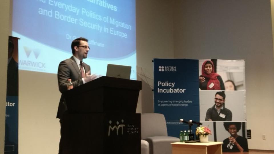 On 9 March 2017, Dr Georg Löfflmann presented the ‘Border Narratives’ project at the British Council in Mexico City. Border Narratives is a Leverhulme-funded research project led by Prof. Nick Vaughan-Williams aimed at investigating how diverse European publics perceive, understand, and experience 'the migration crisis' in the context of their everyday lives.