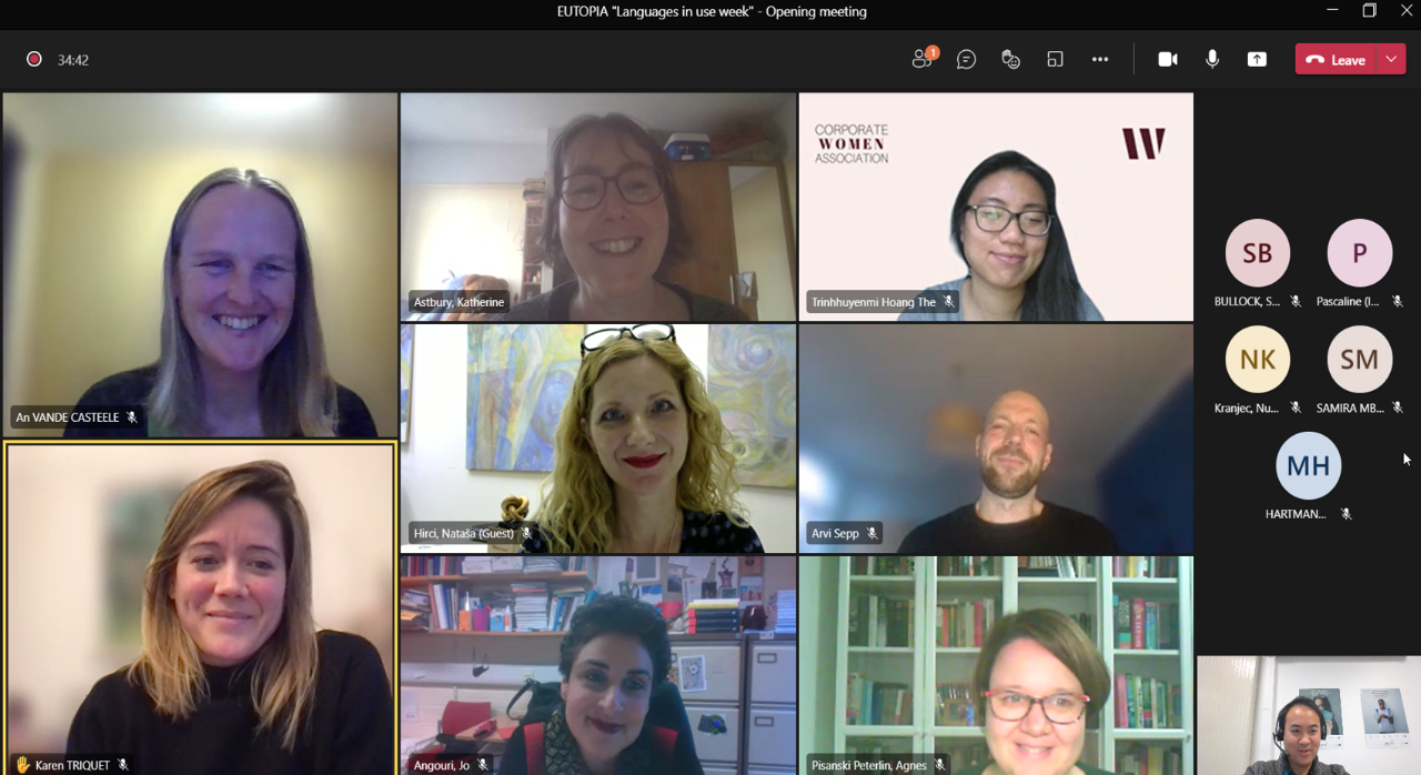 The Language Café is designed as a series of online meetings of pairs or small groups of students across Eutopia who collaborate to explore discourse and text in use through lively conversation with their peers. Intended for advanced-level foreign language students, the Language Café involves chatting and exchanging opinions on a range of different topics in French, German, Italian, Spanish and English. The virtual meetings are recorded, and the recordings are made available to Eutopia participants to use as research material for discourse analysis projects. This endeavour aims to enrich the students’ learning experience, and eventually grow to involve further collaboration among the students.