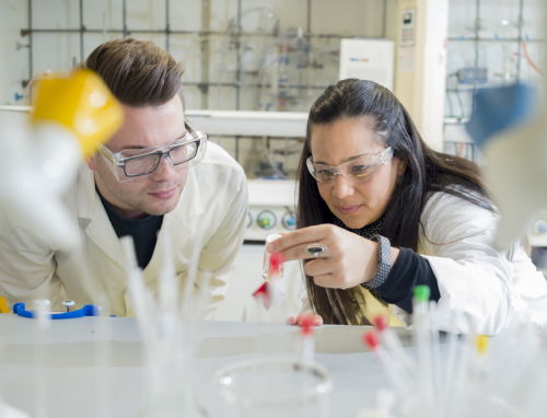 Image 1: Dr James Coverdale (L) and Dr Isolda Romero-Canelón (R) working in the laboratory - credit University of Warwick. CLICK FOR HIGH RES.