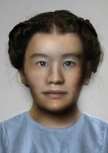 photo 1 The face reconstruction of the young woman (credit: Caroline Wilkinson, Mark Roughley, Ching Liu and Kathryn Smith at the Face Lab at Liverpool John Moores University for their different contributions to the production of the facial depiction)