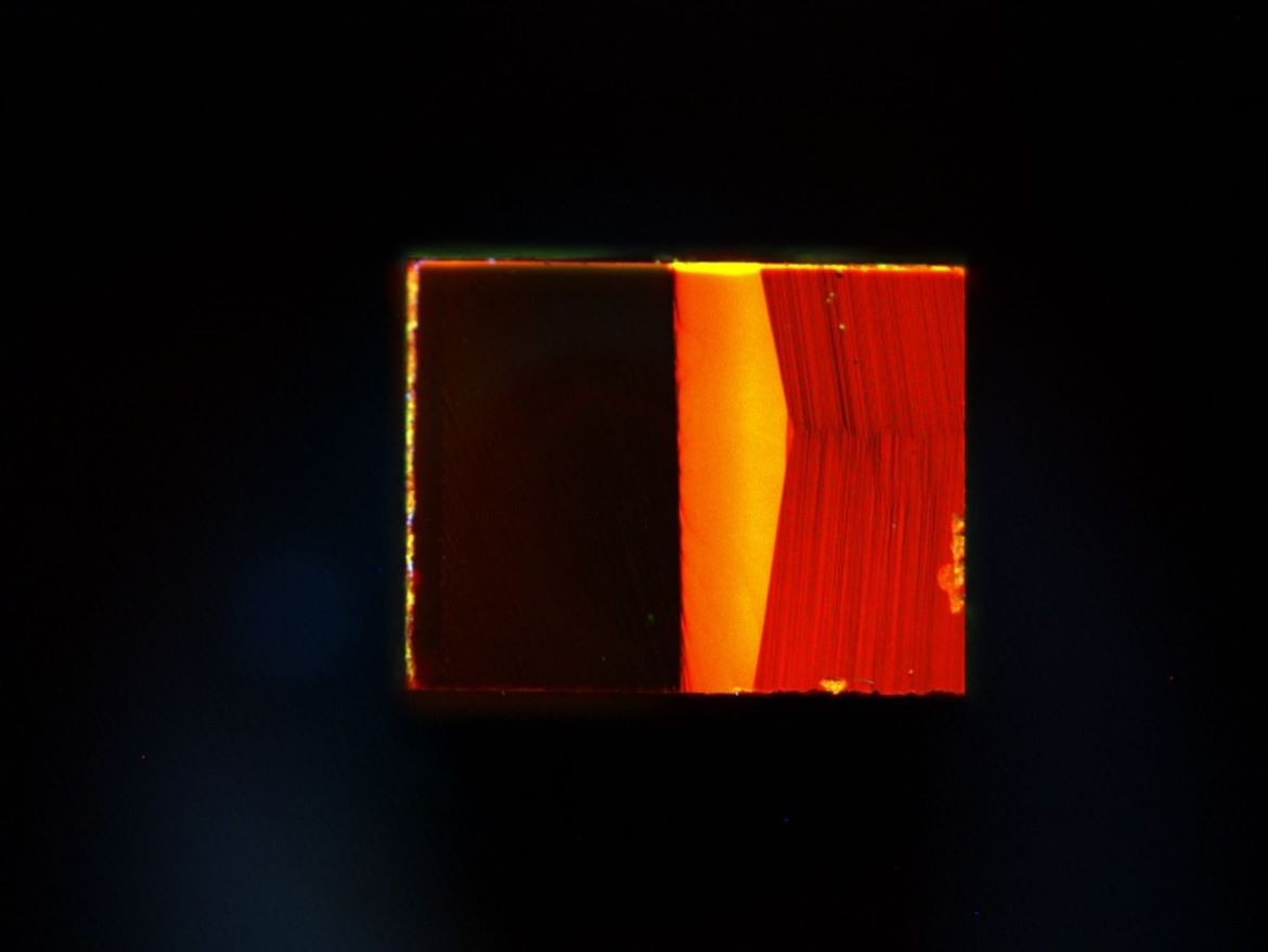 A diamond sample containing the NsH-C0 defect, with regions of different coloration which indicates varying defect content & under UV illumination - Junn Keat / University of Warwick