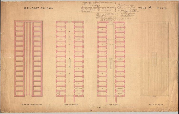 Plan of the floors in A Wing, Belfast Prison drawn by Charles Lanyon, 1842.