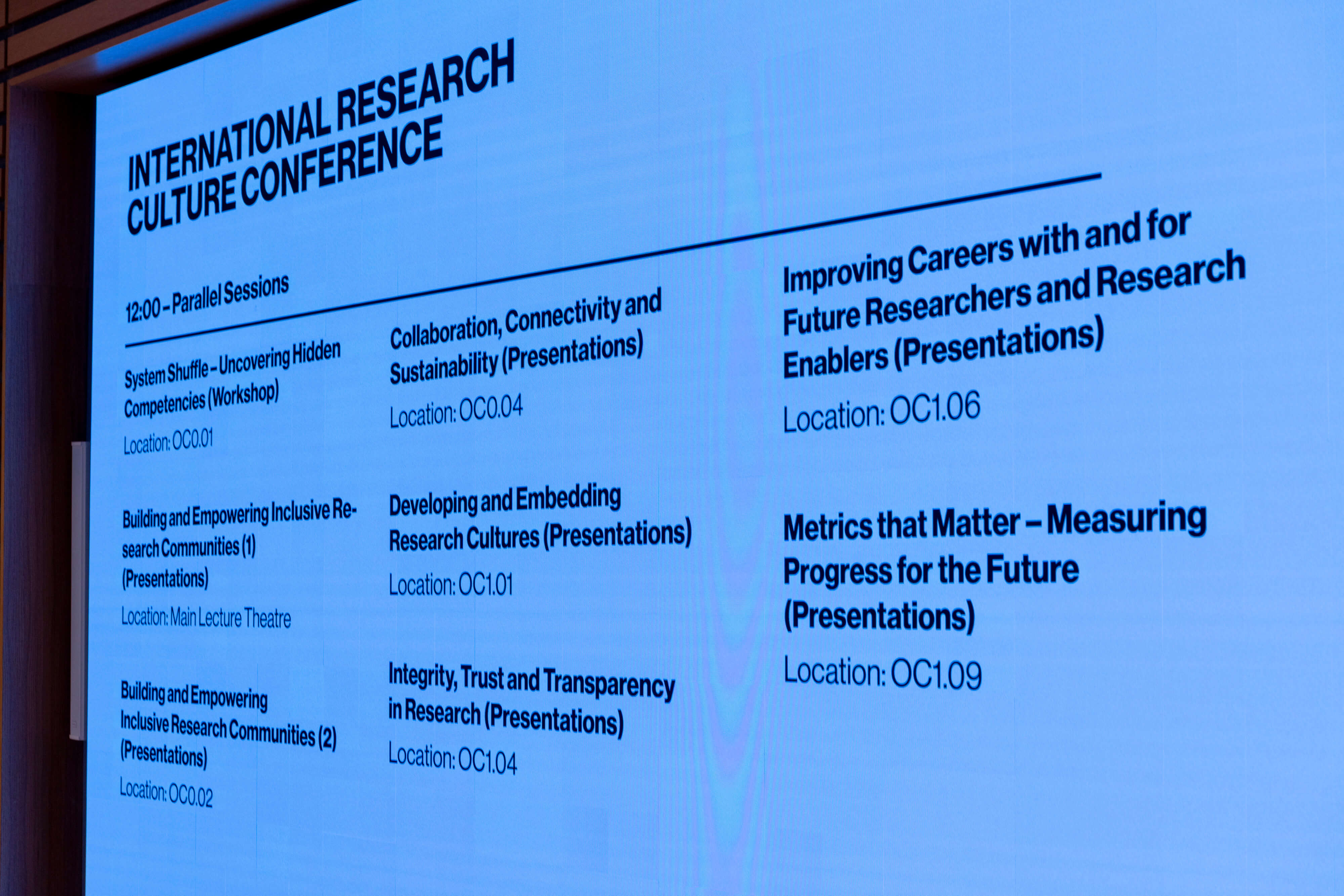 A selection of photographs from the International Research Culture Conference 2025. Please click on an image to enlarge it.