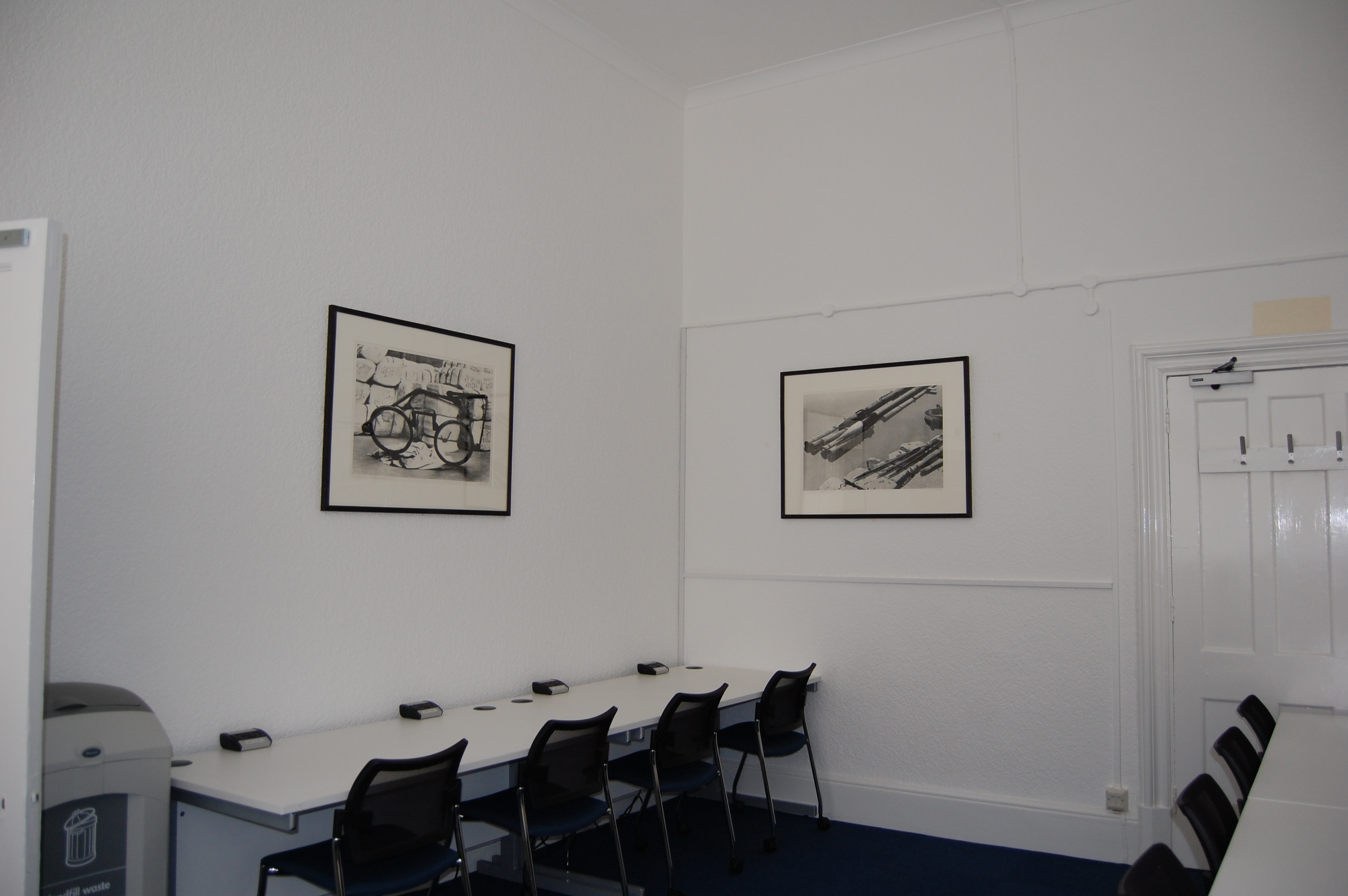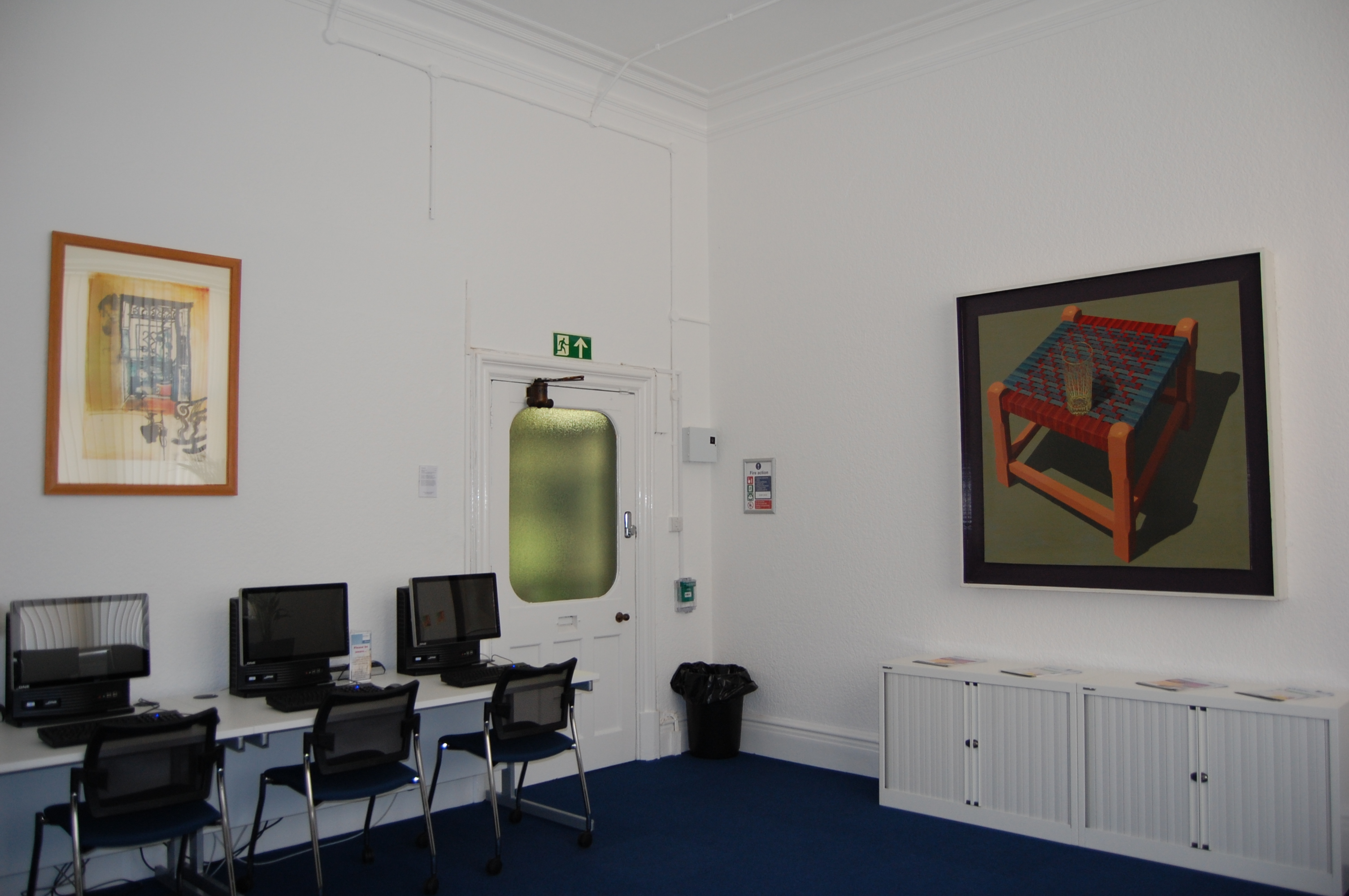 The works in the University of Warwick Art Collection date from the middle of the twentieth century and the items installed in the Learning Grid Leamington illustrate some of the ways in which artists during this period have approached still life. The subjects are from the traditional repertoire of still life art, such as flowers, kitchen utensils, food and items of furniture. These works range from the simplified interpretations of familiar objects to highly realistic images in a variety of different media.