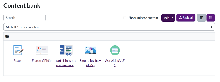Unlisted: Hidden from the content bank list but still accessible if someone has the direct link or if it’s embedded in an activity.