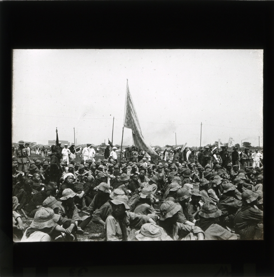 Henry Sara's visit to China, to attend the 5th Congress of the Communist Party of China at Hankow, coincided with the beginning of the civil war between Kuomintang government forces, led by Chiang Kai-shek, and the Communist Red Army. The slides include images of city streets (including Shanghai and Hankow), prominent individuals, public meetings, Chinese and British troops, and war atrocities. The sequence also includes two informal photos of the British and US Communists Tom Mann and Earl Browder, presumably taken whilst they were attending the CCP Congress. Four slides haven't been reproduced on this website - they show images of severed heads on public display and a decapitated body.